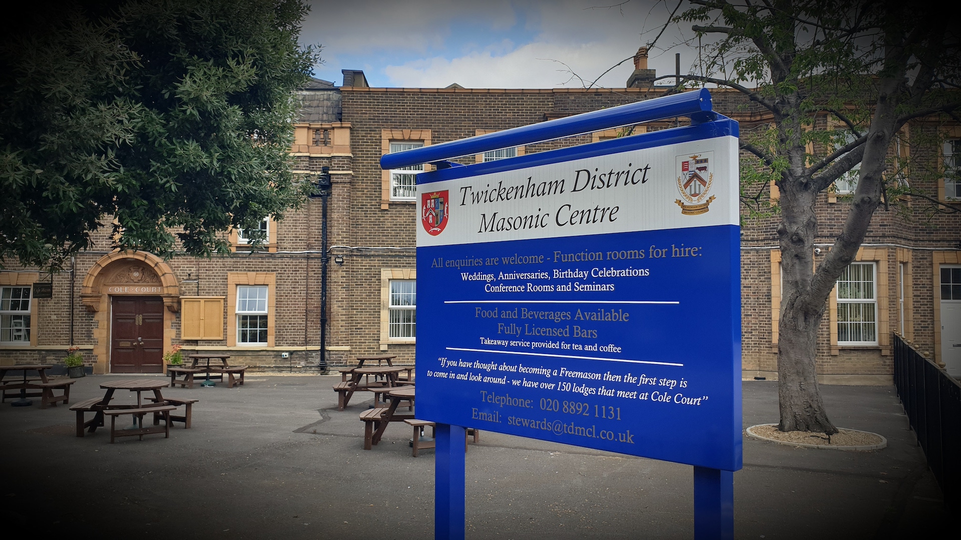 We meet at Twickenham District Masonic Centre at Cole Court, 150 London Road Twickenham TW1 1HD